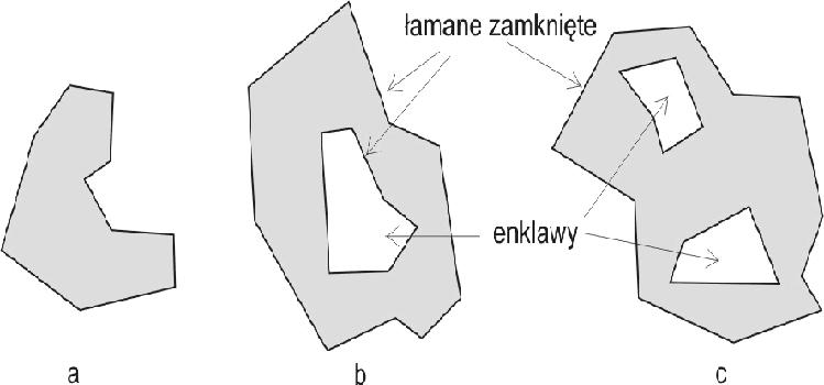 Rys. 25-1.4.20a Wielobok ograniczony jedna (a), dwoma (b) lub trzema (c) lamanymi zamknietymi (pierscieniami)
